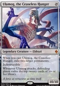 - If you get Ulamog to resolve, it will be a very huge threat as it is a 10/10 indestructible creature that exiles a huge chunk of you opponent's deck every time it attacks